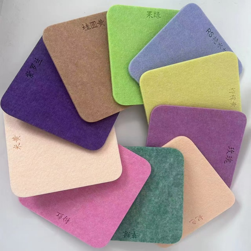 聚酯纖維吸音板是采用進口三維中空聚酯纖維絲經高溫熱壓并以繭棉形狀制成,熱處理公法來實現密度多樣性,吸